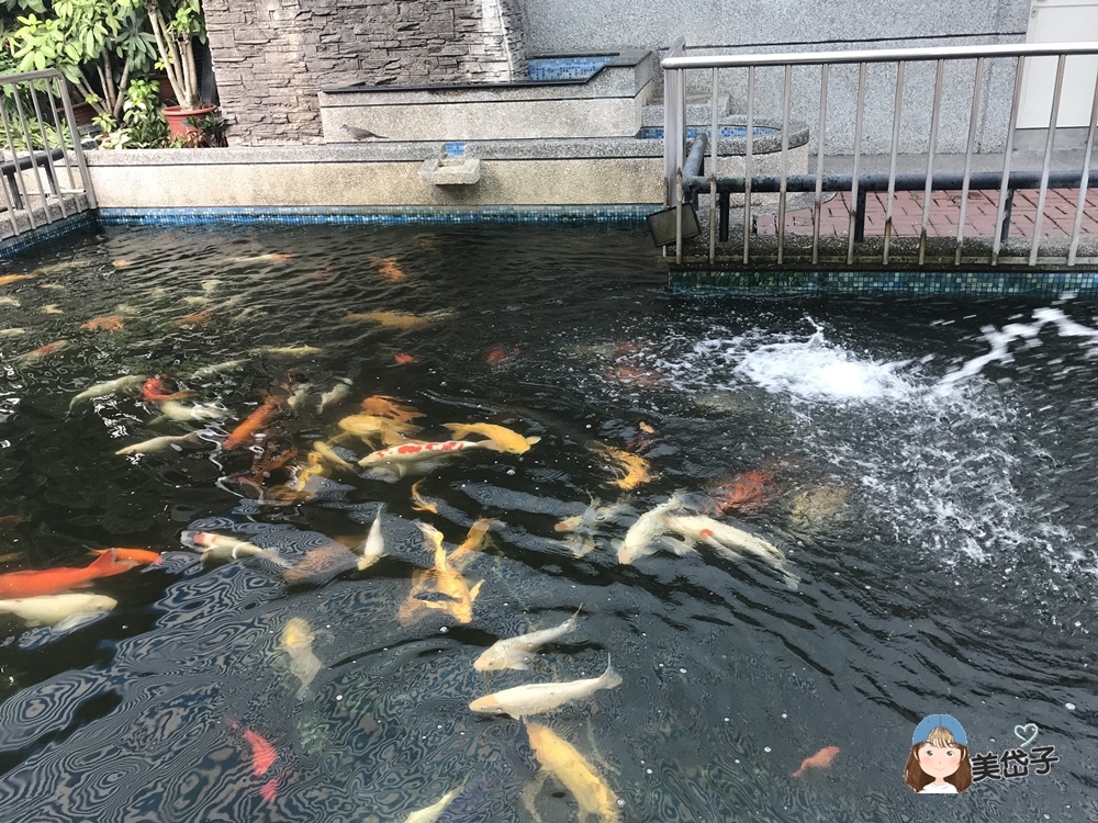 外圍還有一小池子,池中飼養好多錦鯉,是小朋友喜愛的一區,很有餵魚趣。