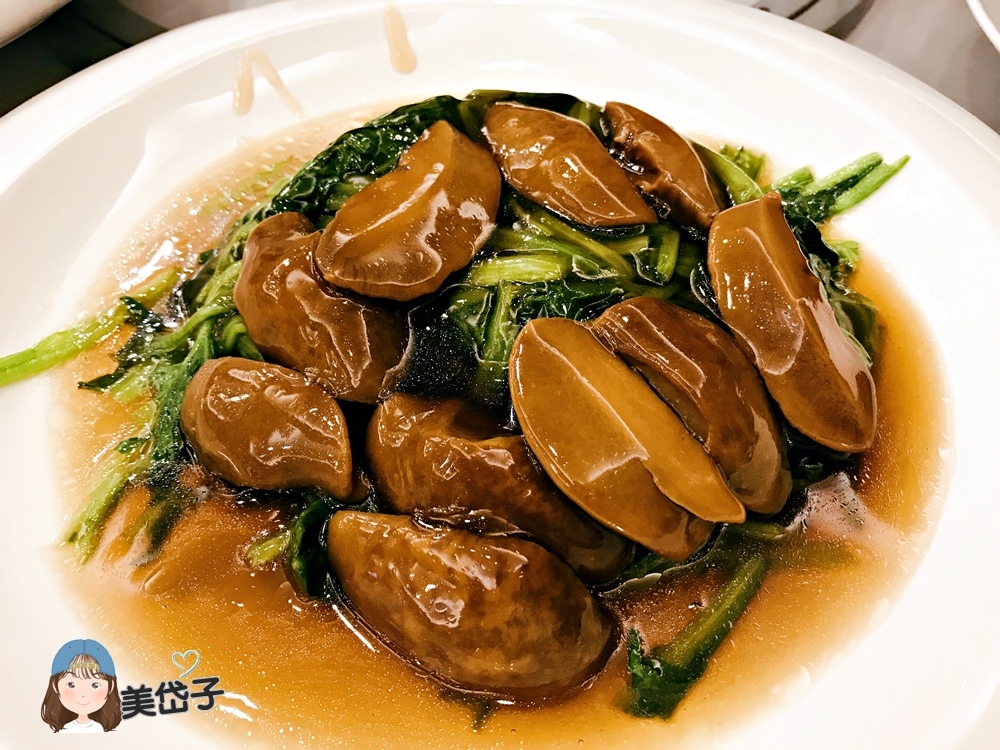 「鮑魚扒時蔬」這道應該是整桌菜色中較不討喜的,鮑魚個兒不小,不過我沒吃,所以不好說![]()