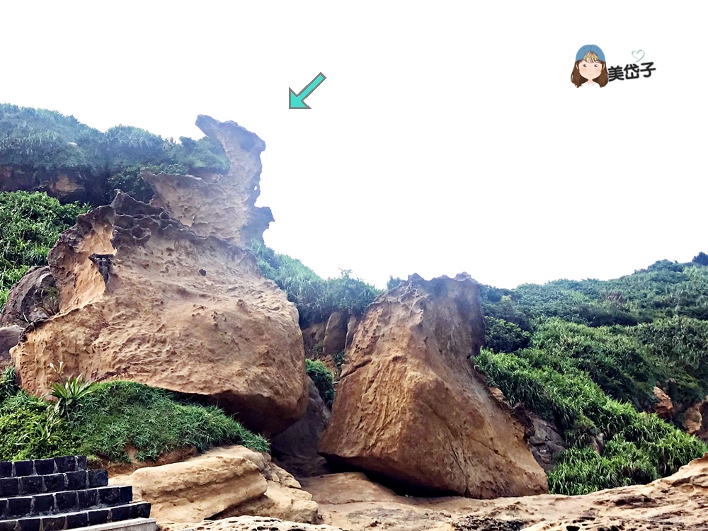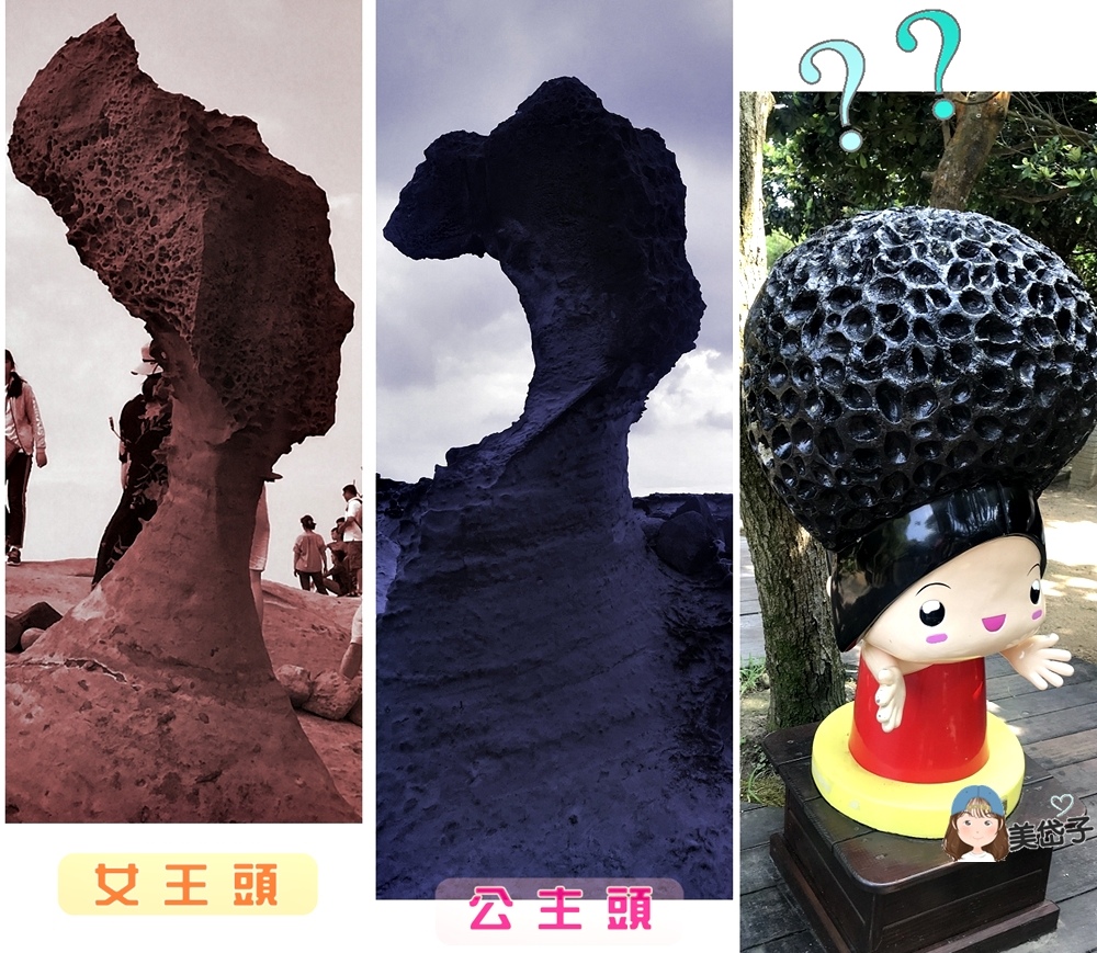 ?不是唷!這是複刻加工版的女王頭和接班人俏皮公主,真實版是不能觸摸,複刻版是可親近的,就位在步道旁,還沒進入奇岩怪石景觀區呢!