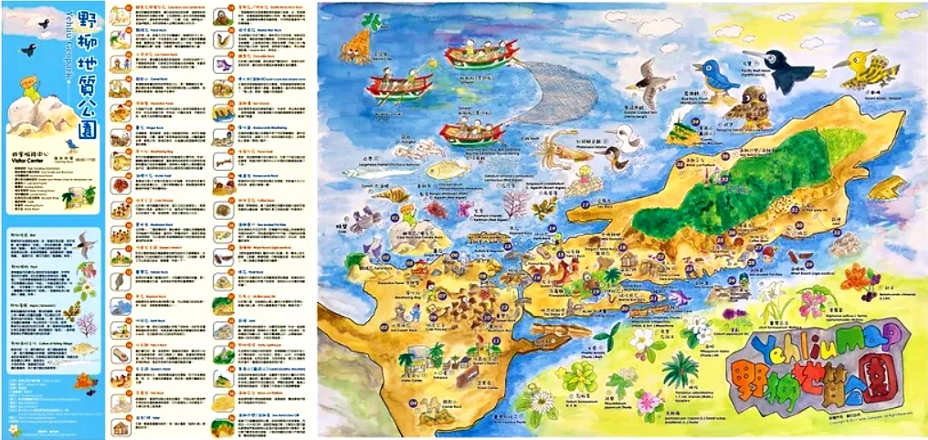 (上圖摘自網路)在搜尋野柳地質公園的地圖時,發現官方的手繪地圖(野柳地質中心 https://www.yehliu.com.tw/),現在似乎找不到網頁,超可惜的,不過遊客中心有簡介地圖可以索取。
