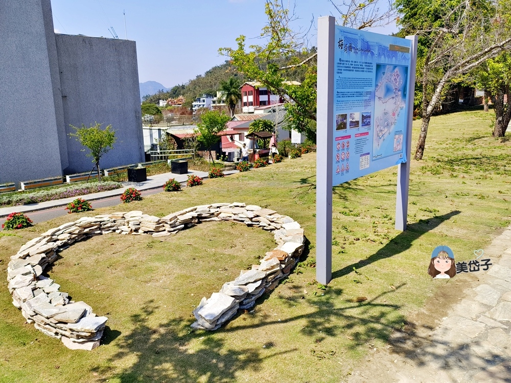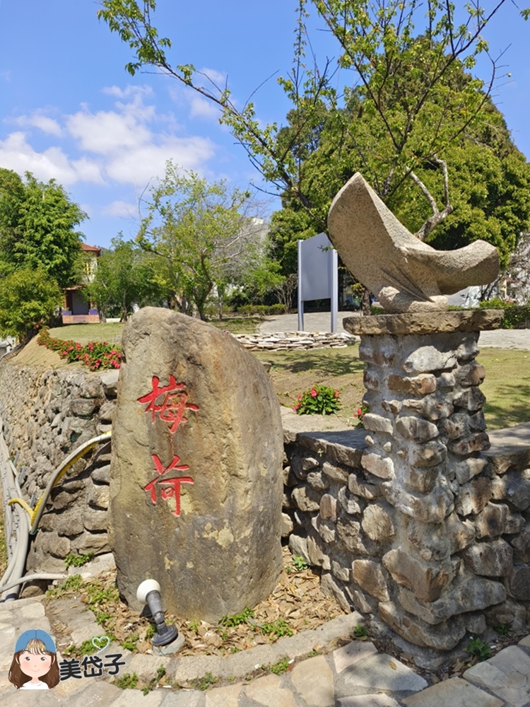 「梅荷園」這名字感覺應該是花木扶疏,滿眼梅樹、荷花之處,其實並不是喔~梅荷園就是沒有荷花的園子,有幾株沒有花的梅花樹,據說也有百年的桂花樹,不過這日沒時間找到百年老樹,可惜了;未閉合心形狀的石堆是為讓人拍照,特意堆疊出來的裝置吧。