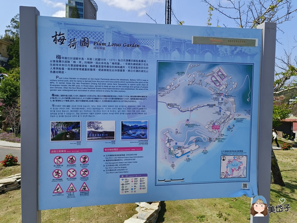 又見一日月潭雕石,就在梅荷園的中心。