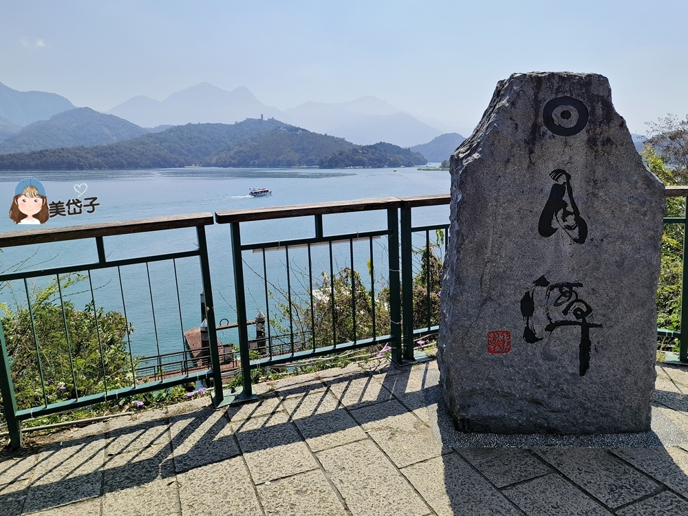 騎完自行車道後,老爺有答應女兒要買冰淇淋給她,因此來到了水社碼頭附近,意外發現的小景點。位在道路旁,無設立停車場,多是步行而來的遊客,是欣賞日月潭的超級觀景站,但是人潮不多,不知道是因為我們來的時間點不對,還是因為這景點真的不具太大的吸引力呢