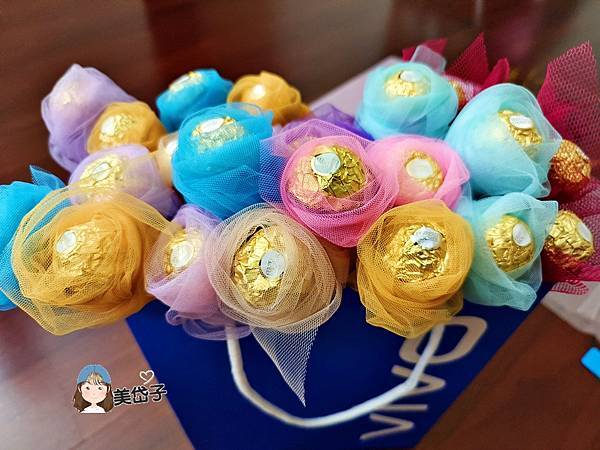 柔紗網包金莎巧克力不簡單啊,可能我沒抓到訣竅,剛開始花了好久的時間才包好一顆,慢慢的就順手些了。