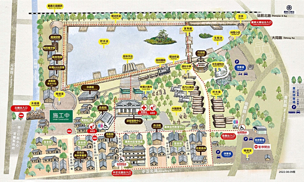 - 異動更改:森美館改木育森林、檢車庫改林鐵館、竹林咖啡屋改林場小賣所、舊書攤改日光山森林茶書苑