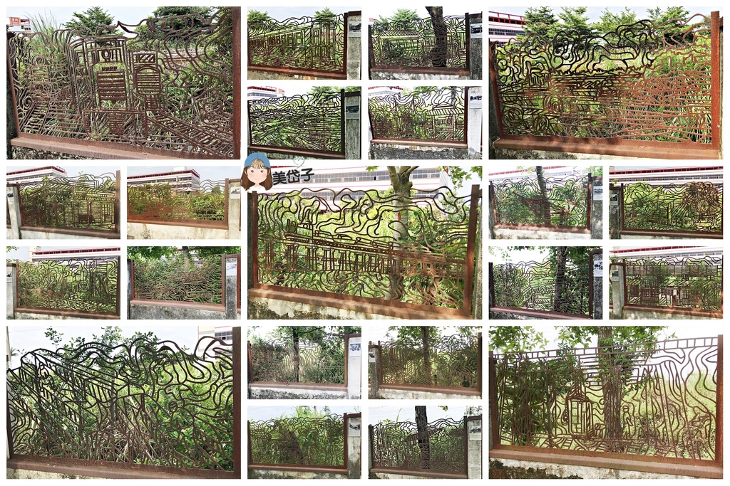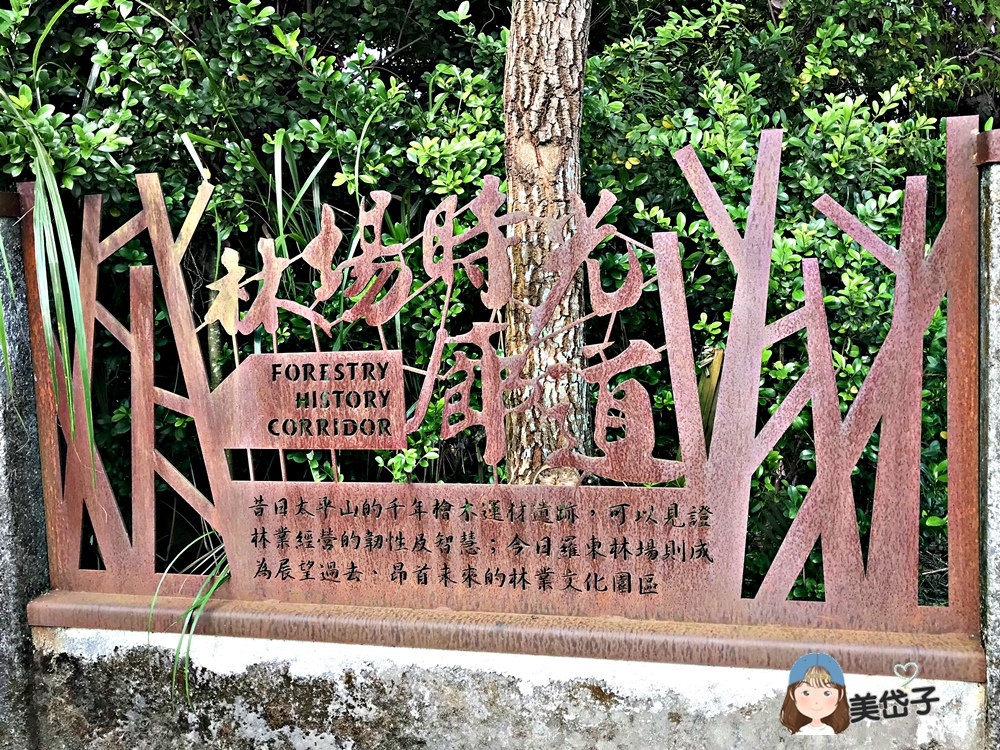 曾經是太平山千年檜木運送的軌跡,現今以蛻變為產業文化的延續,羅東在地的記憶與情感在「林業文化園區」找到專屬的歷史位置,也展現的活力的未來。我認真的數了數,牆邊共有24面金屬藝術創作,沿著步道一路走來,似走入林場的時光隧道看繁華光輝往昔。