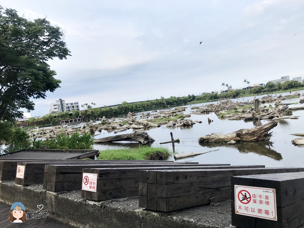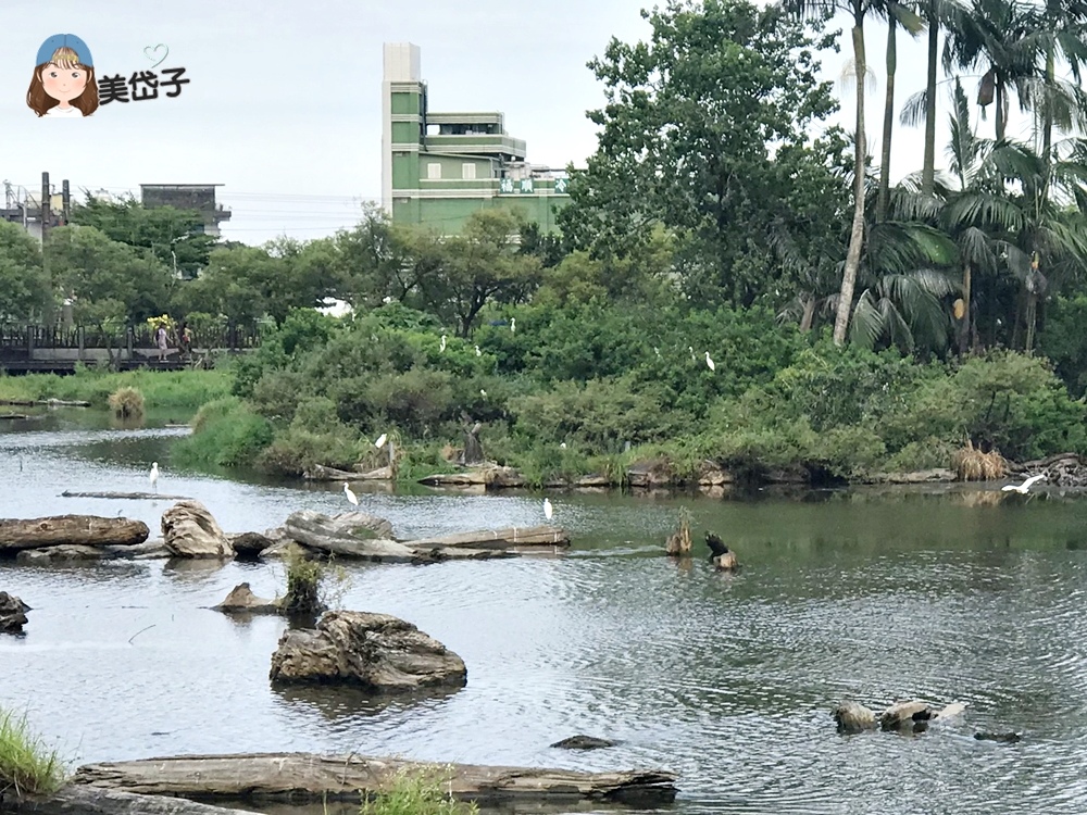 賞鳥(牆)步道跨越貯木池,廣大的貯木池理有豐富的水鳥和魚類生態,有些可能需要仔細觀察才能探查得到,有些則容易在樹林中瞧見。