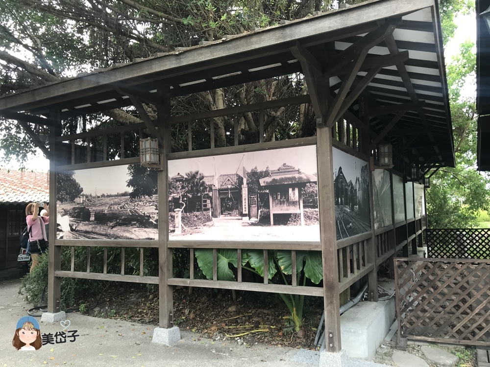 每一座創作旁的石柱上都對照著的古早黑白照片,照片下方有介紹說明。