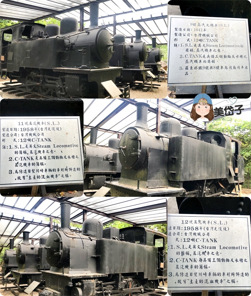此外,有常設陳列3部舊型蒸汽火車頭,依序是9、11、12號,火車迷會很喜愛這區的陳列物。