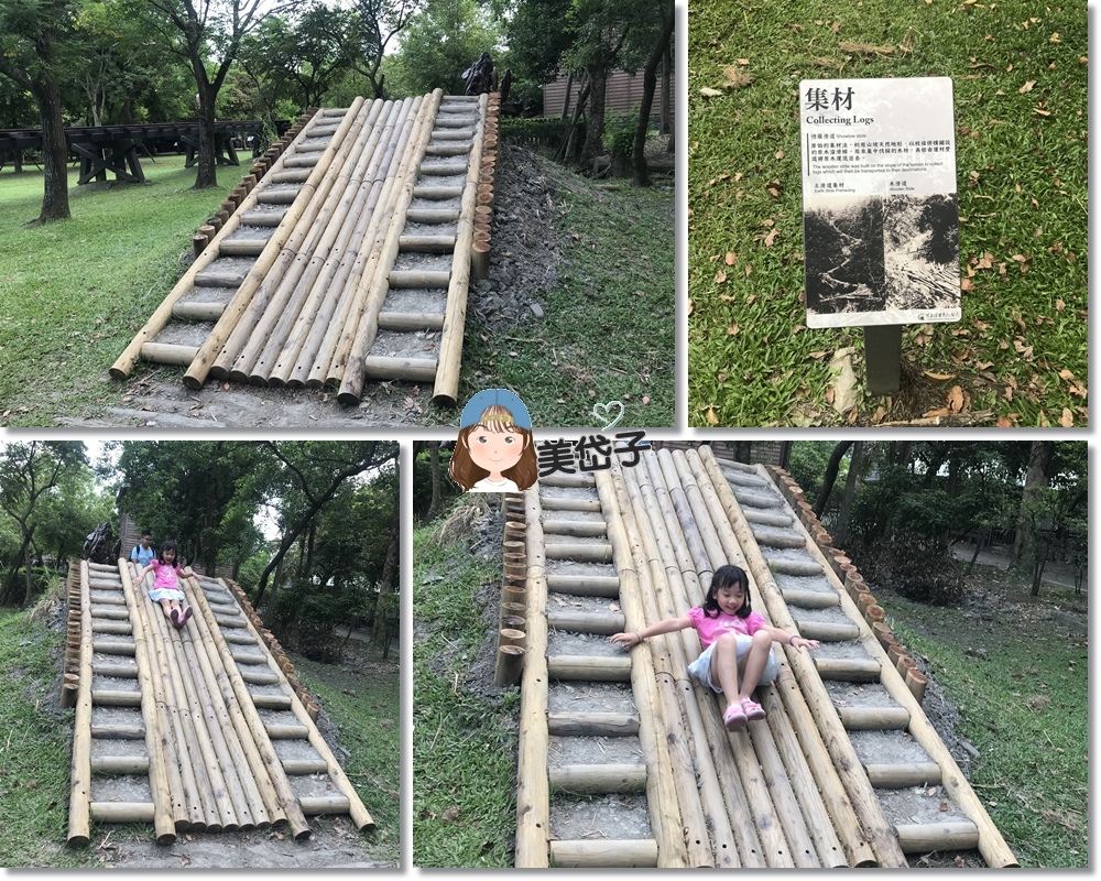 古人智慧搭建修羅滑道,放至在廣場裡,成了孩子的竹林溜滑梯(這是把自己當原木滑