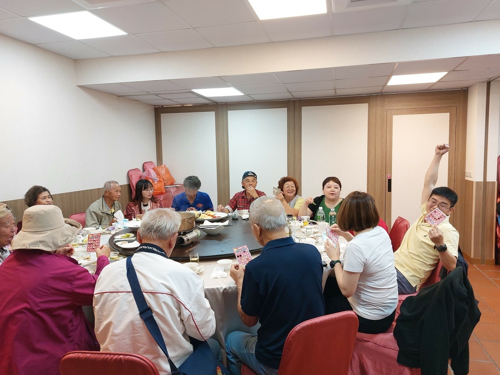 這日在餐廳,不分老少一起玩賓果遊戲,一群人一起認真的盯著手上的賓果卡,緊張又刺激著,那歡樂的情景讓好多長輩笑著入夢。