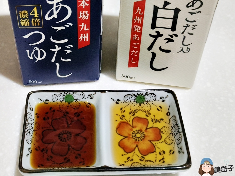 一樣是日式醬油的『久原薄鹽白醬汁』的重點在「薄鹽」和「白」上(台灣也有薄鹽醬油,但色澤上沒法達到『久原薄鹽白醬汁』的透亮),成本除了有常見的昆布、鰹魚成分外,還有飛魚、鯖魚和椎茸(日本冬菇)成分(沒有久原『4倍濃縮高湯醬汁』中的鮪魚成分),醬汁香氣較清雅,一樣有烤柴魚的香氣。
