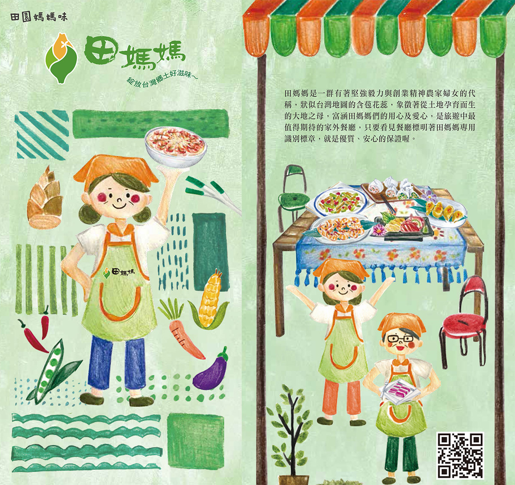 (上圖擷取自:台灣休閒農業發展協會)原來「田媽媽」是一個代稱,泛指一群每天在台灣各地辛勤努力又有著精湛手藝的婆婆媽媽們,是一群有著堅強毅力與創業精神農家婦女的代稱。