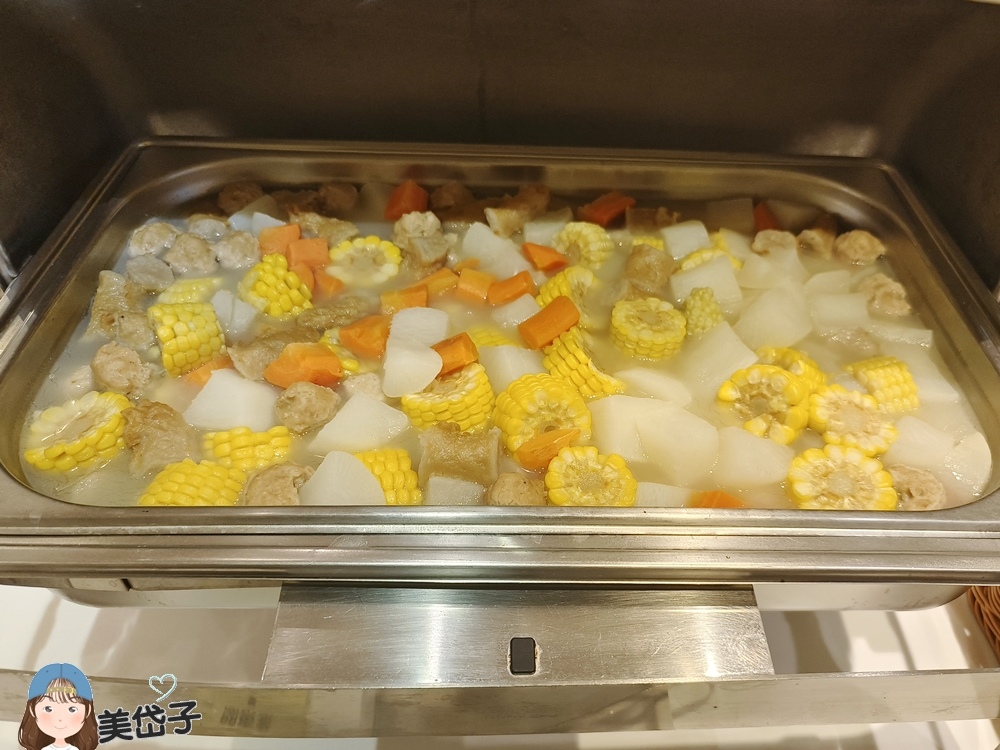 至於湯品,也挺讓人驚喜的,沒有一般會提供的玉米濃湯,反而是給了黑輪蘿蔔玉米湯,