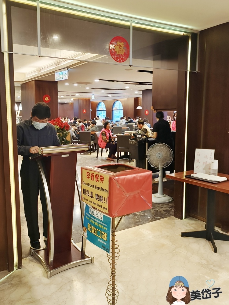百事達國際飯店的早膳是依房型提供早餐券,餐廳位在飯店二樓,用餐前將餐券置入門前空箱即可。