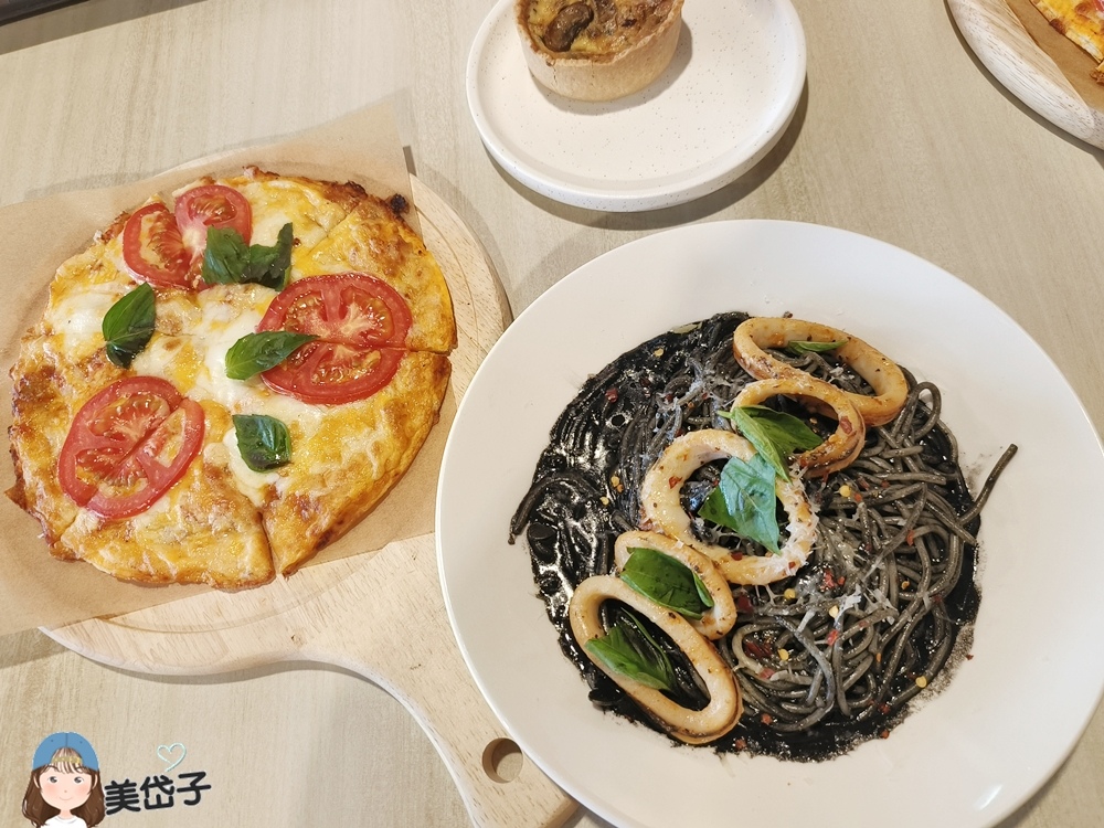 女兒點了瑪格麗特PIZZA,老爺則是點了中卷墨魚義大利麵。