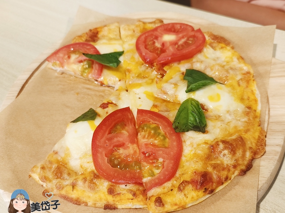 暑假期間躍升為PIZZA控的小妞,就愛燻雞和瑪格麗特口味,所以看到菜單後,毫不猶豫的點了這一味,只是吃完後,她搖搖頭的說不是她喜愛的那種口感,也許是因為用了新鮮的牛蕃茄切片取代蕃且醬,讓她吃起來感覺口感不對吧。