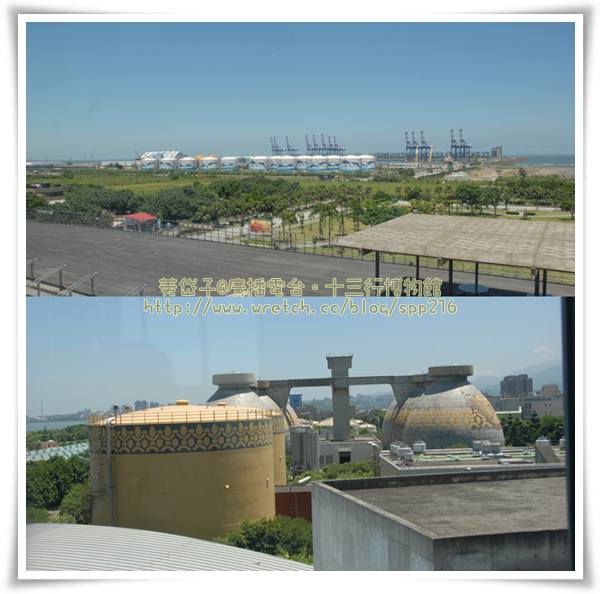 那樓梯旁的窗戶往外望去可以看見許多鄰近的設備、工業建築